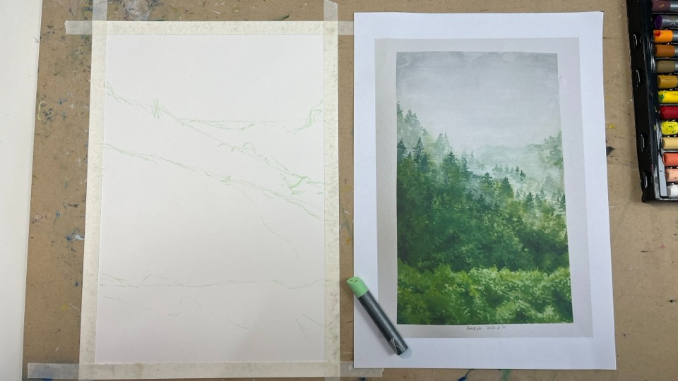 흰색 파스텔로 물기 머금은 안개를 표현하다보니